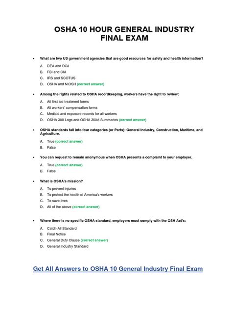 Read osha 10 hour answer sheet PDF